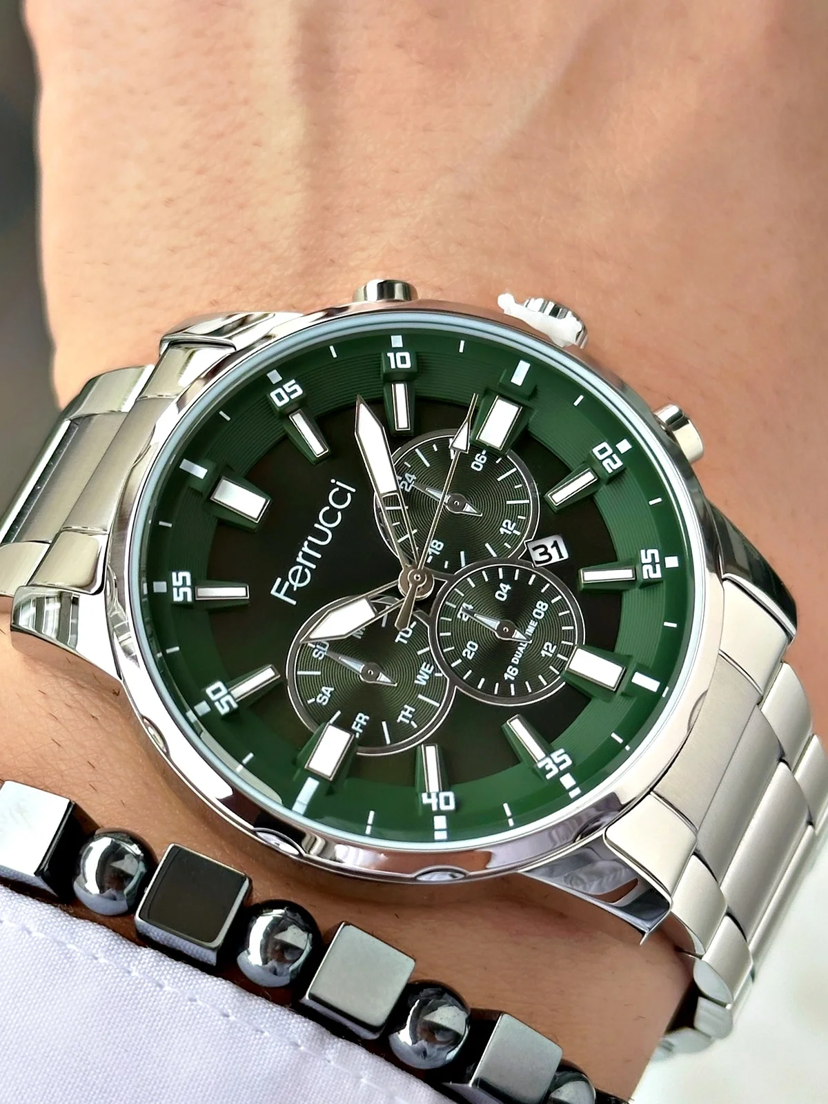 Ferrucci erkek kol saatleri, modern tasarımı ve günlük kullanıma uygun yapısıyla stilinizi tamamlar. Hem klasik hem spor kombinlere uyum sağlayan Ferrucci saatler, şıklığı ve fonksiyonelliği bir arada sunar.