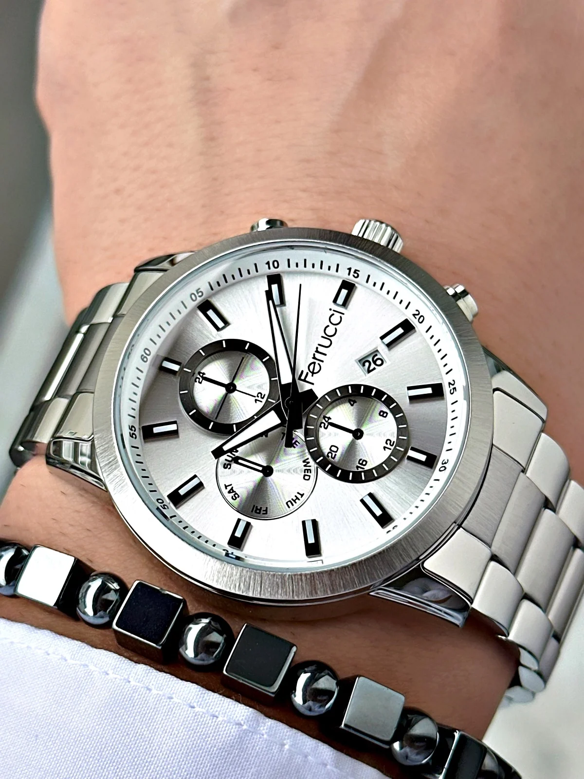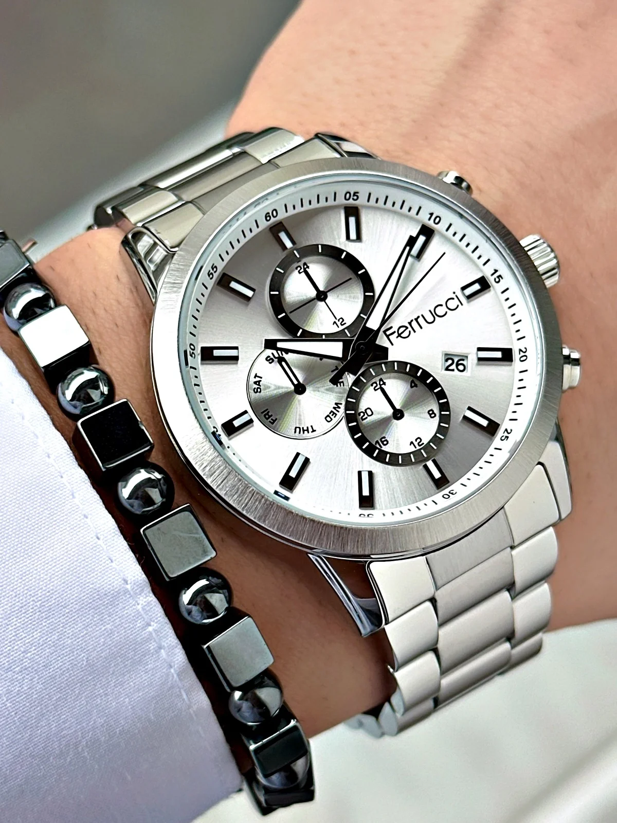 Ferrucci erkek kol saatleri, modern tasarımı ve günlük kullanıma uygun yapısıyla stilinizi tamamlar. Hem klasik hem spor kombinlere uyum sağlayan Ferrucci saatler, şıklığı ve fonksiyonelliği bir arada sunar.