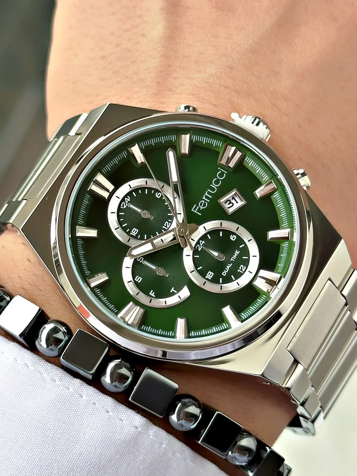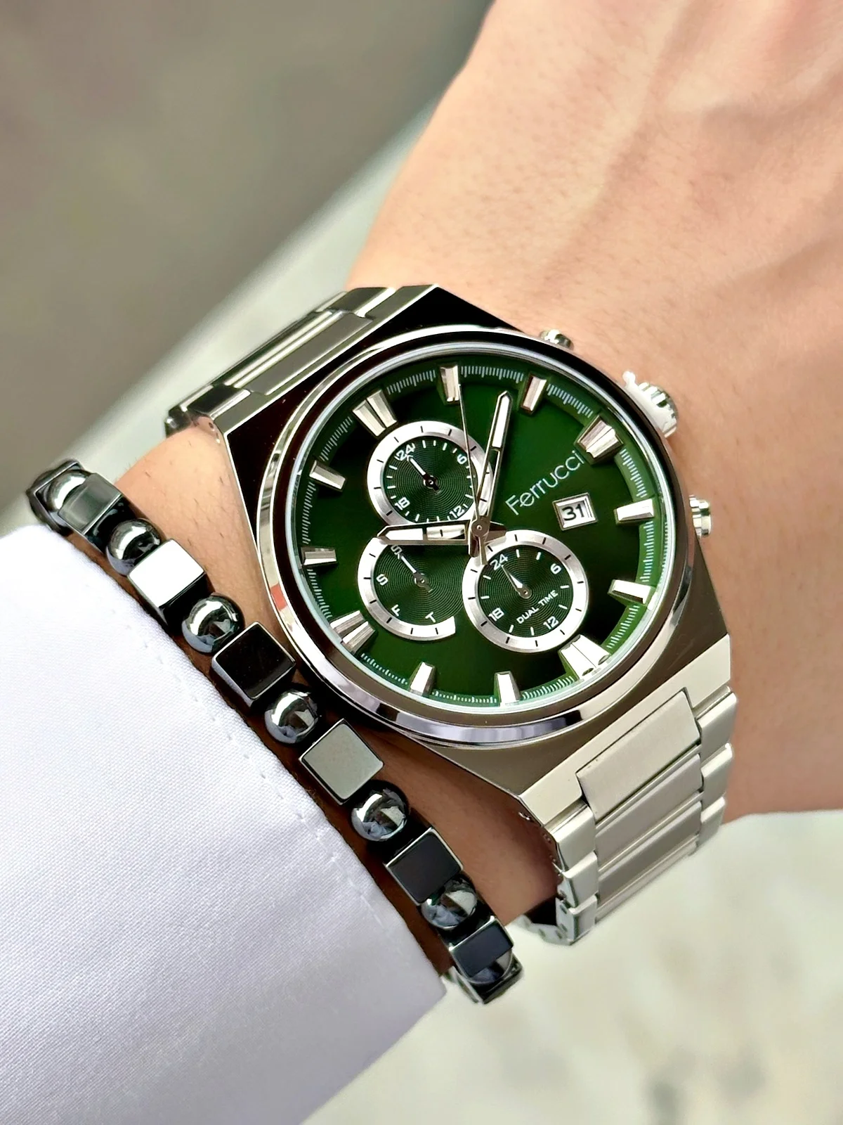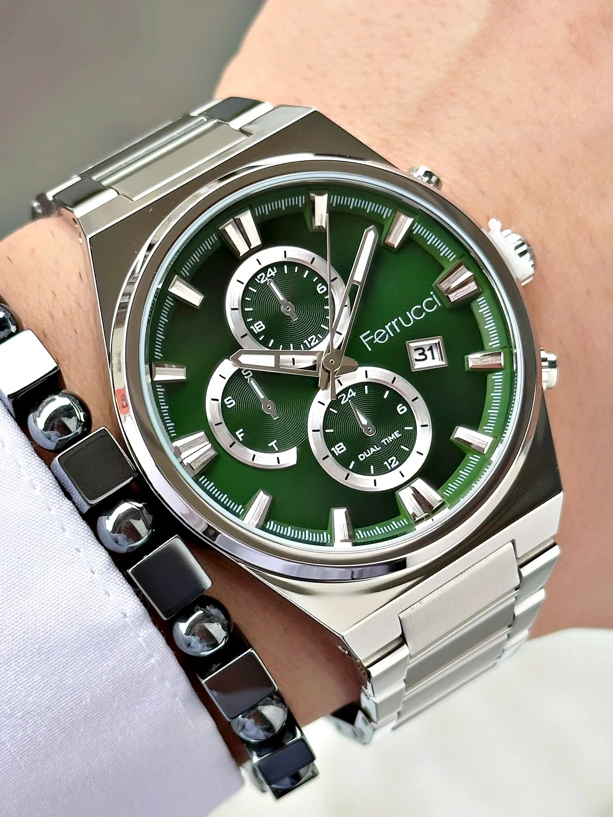 Ferrucci erkek kol saatleri, modern tasarımı ve günlük kullanıma uygun yapısıyla stilinizi tamamlar. Hem klasik hem spor kombinlere uyum sağlayan Ferrucci saatler, şıklığı ve fonksiyonelliği bir arada sunar.